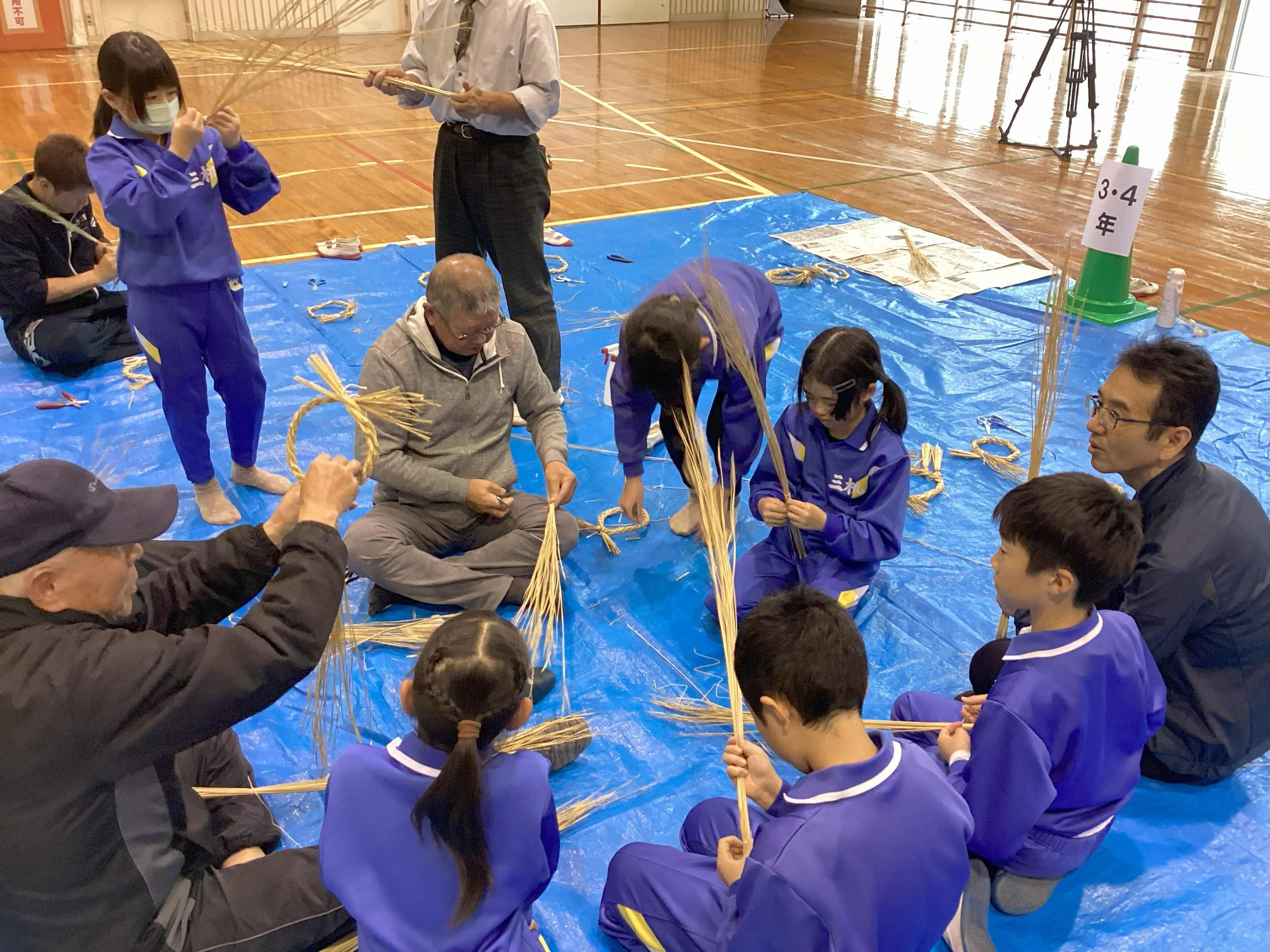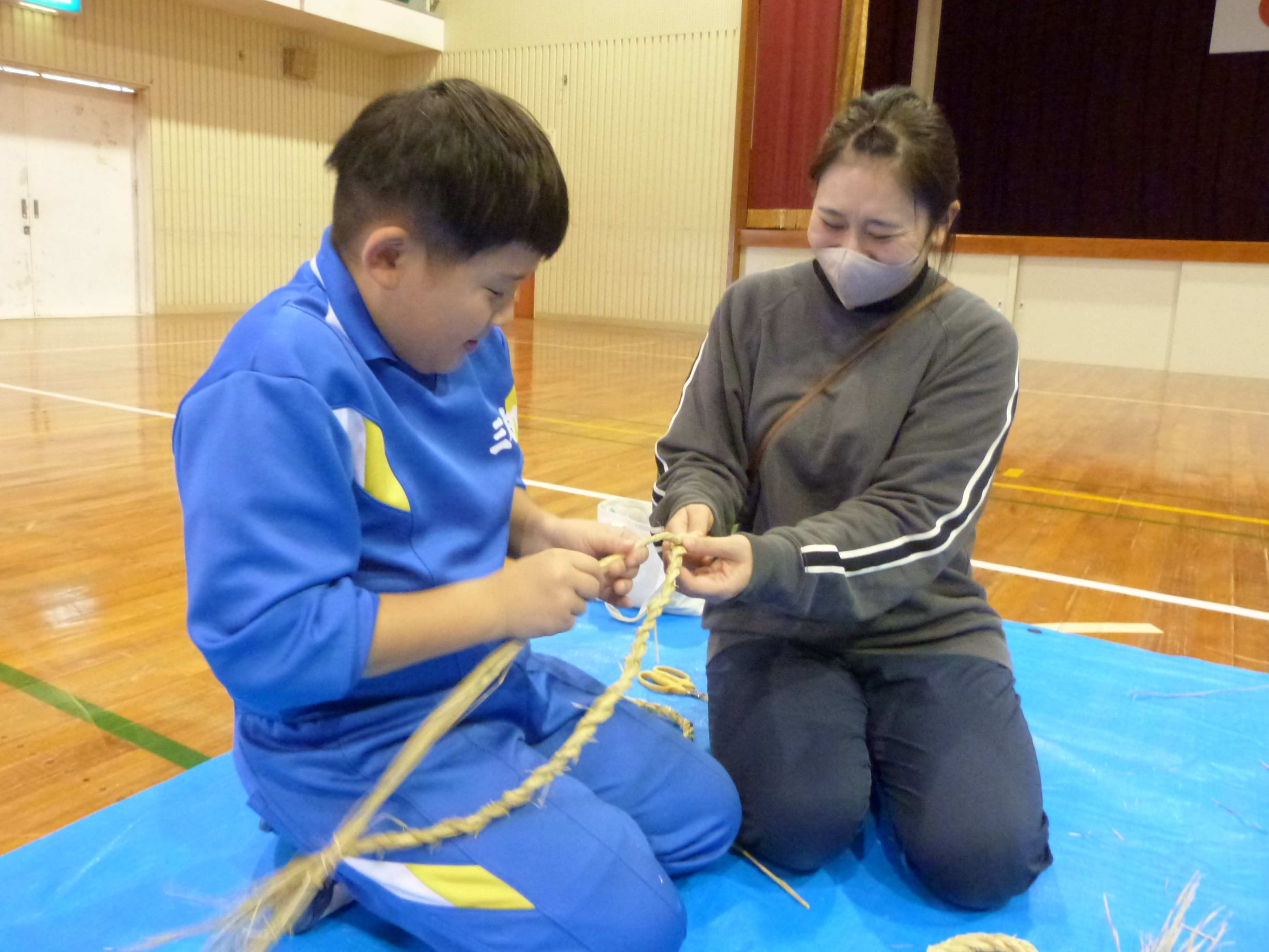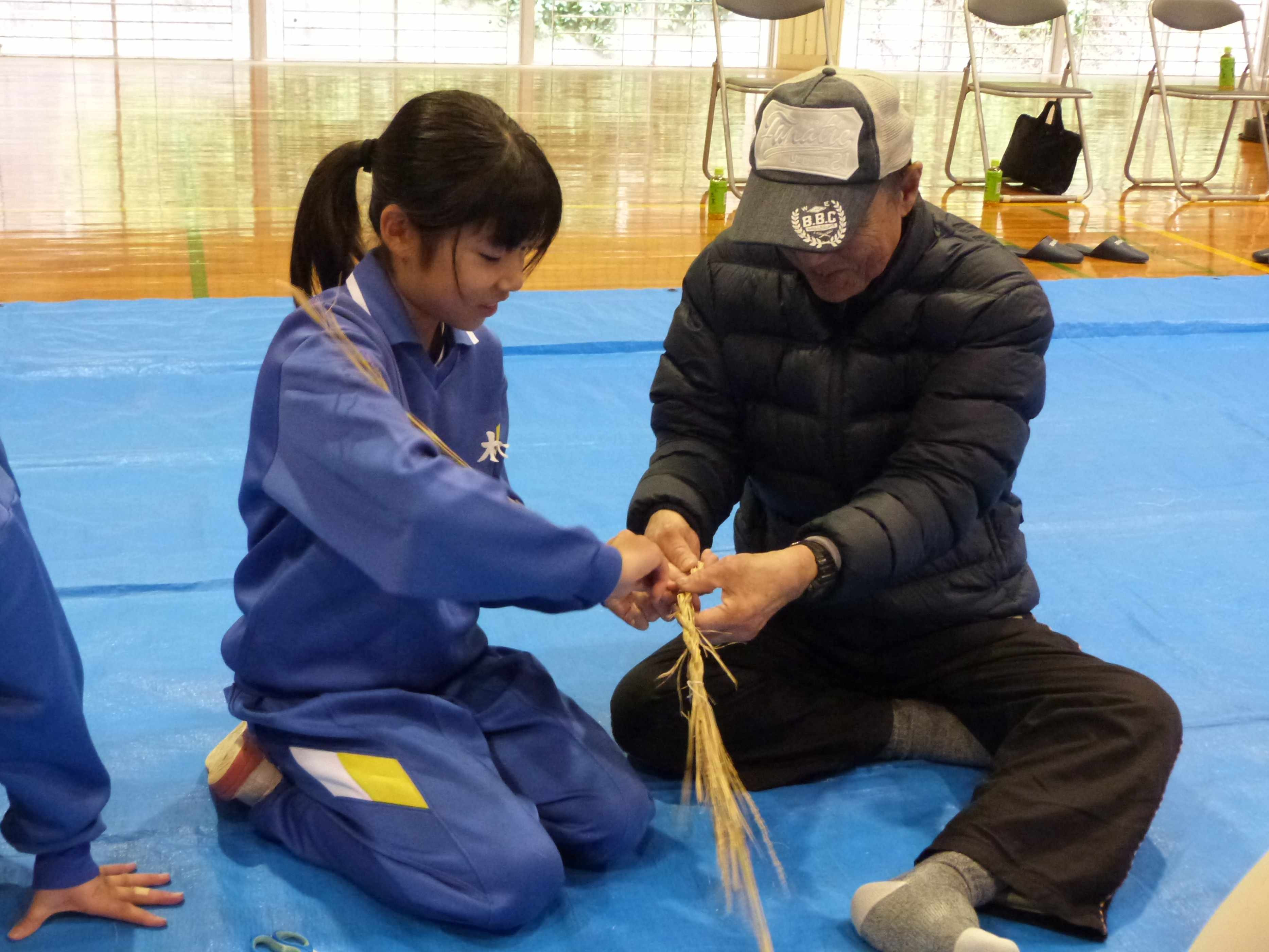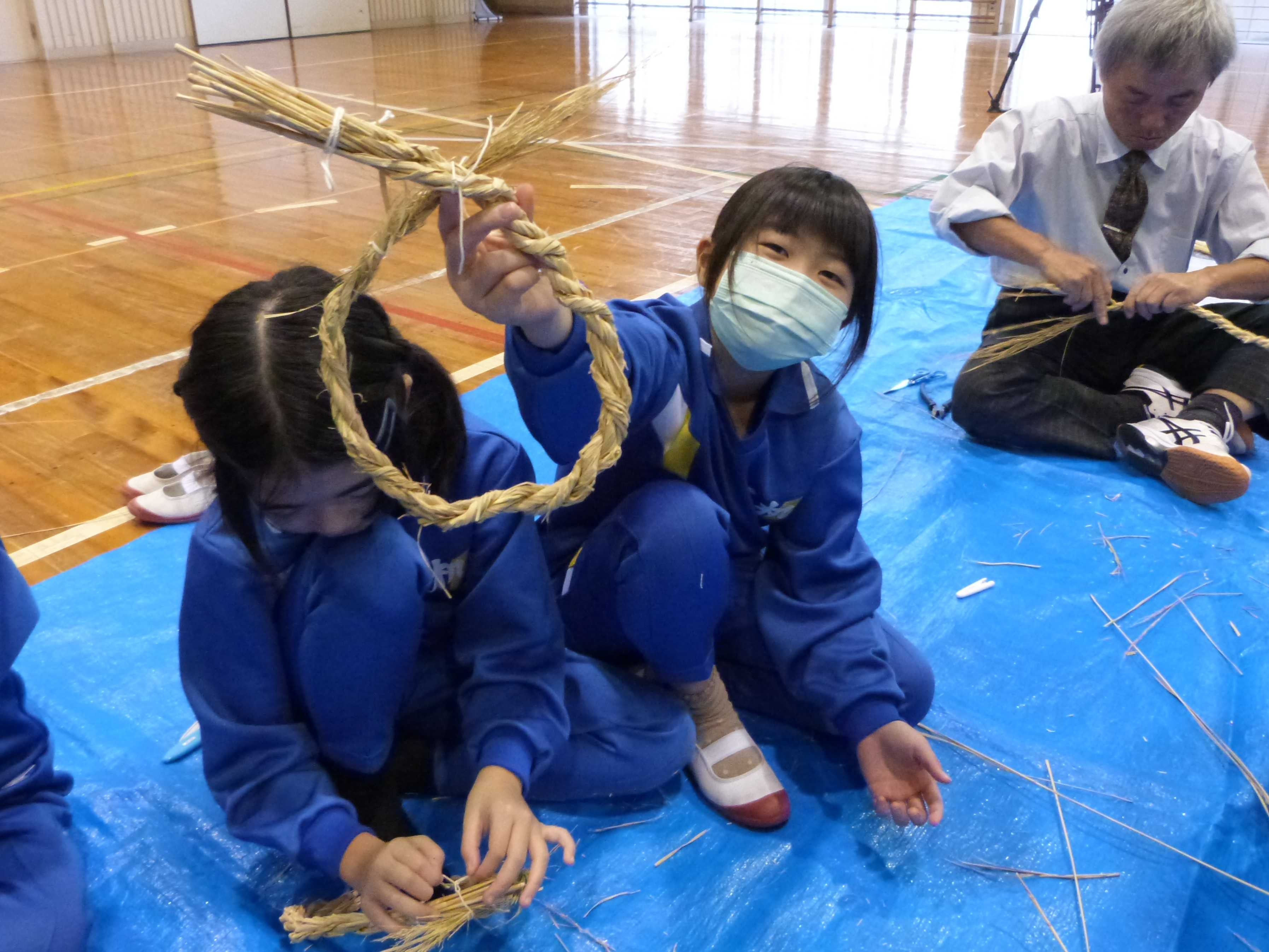二つの玄関には、老人クラブの皆さんと作ったしめ飾りを。これは、その時に6年児童が、学校用に作ってくれたものです。