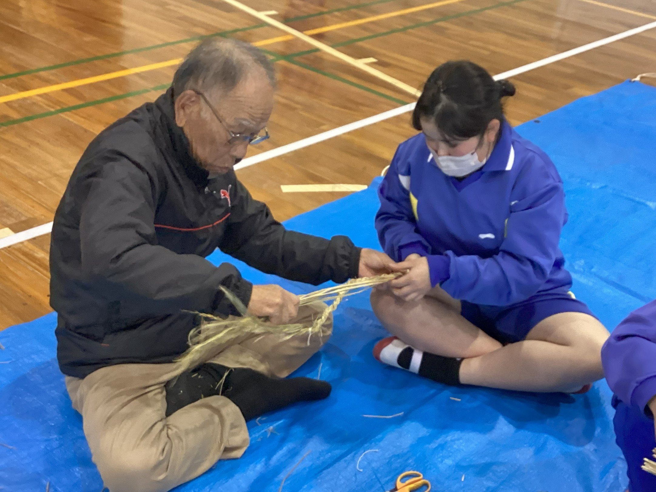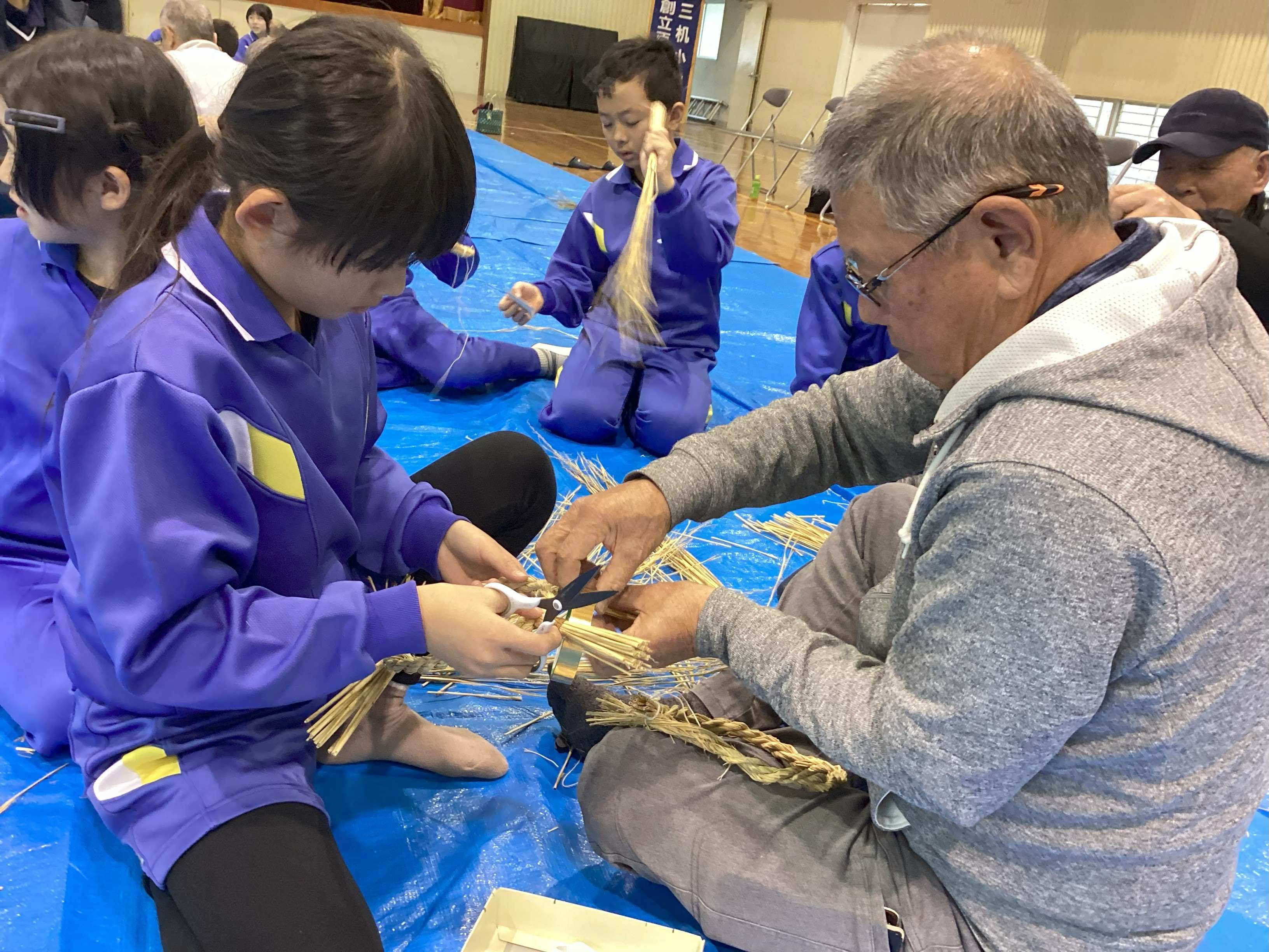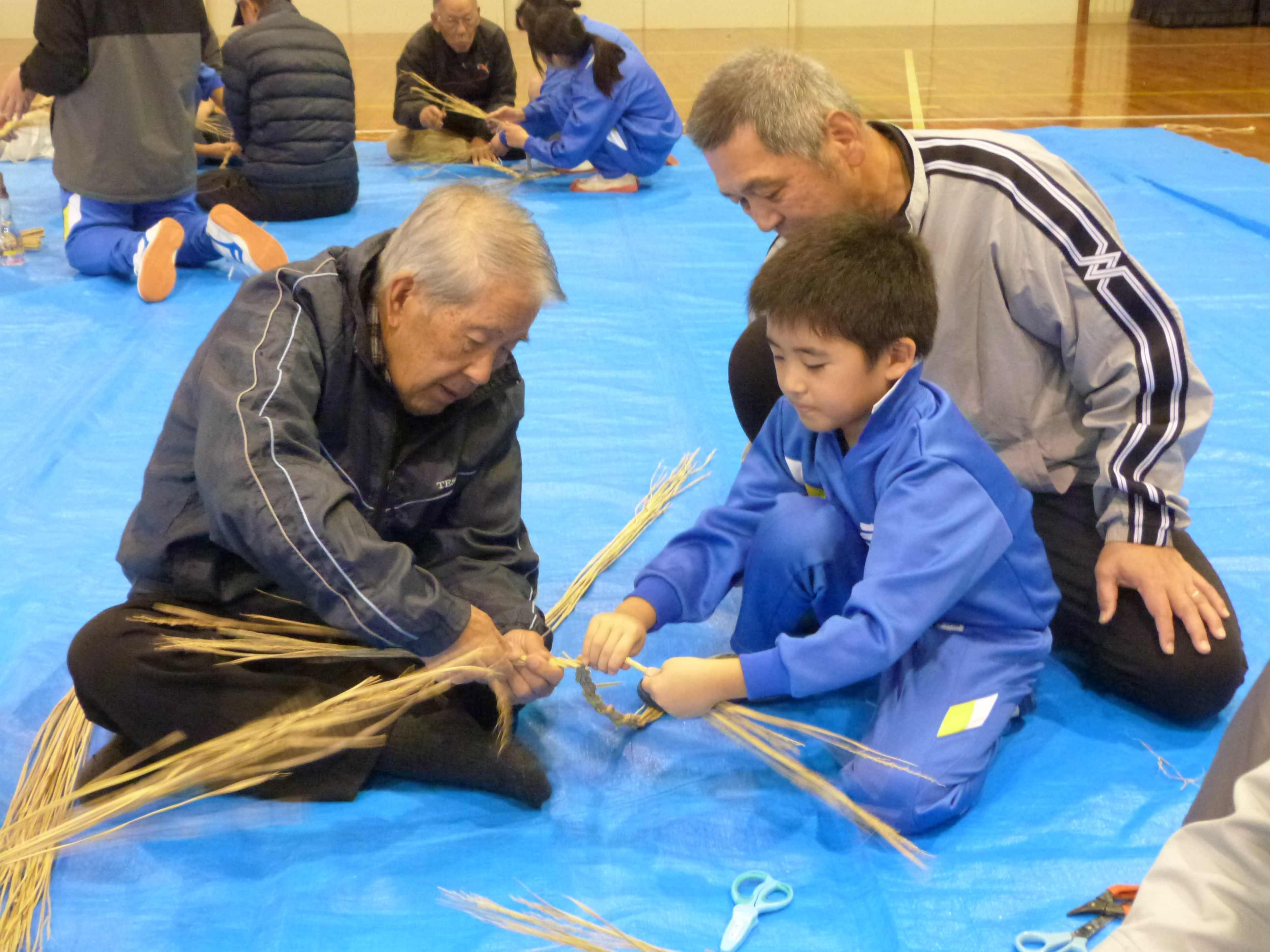 二つの玄関には、老人クラブの皆さんと作ったしめ飾りを。これは、その時に6年児童が、学校用に作ってくれたものです。
