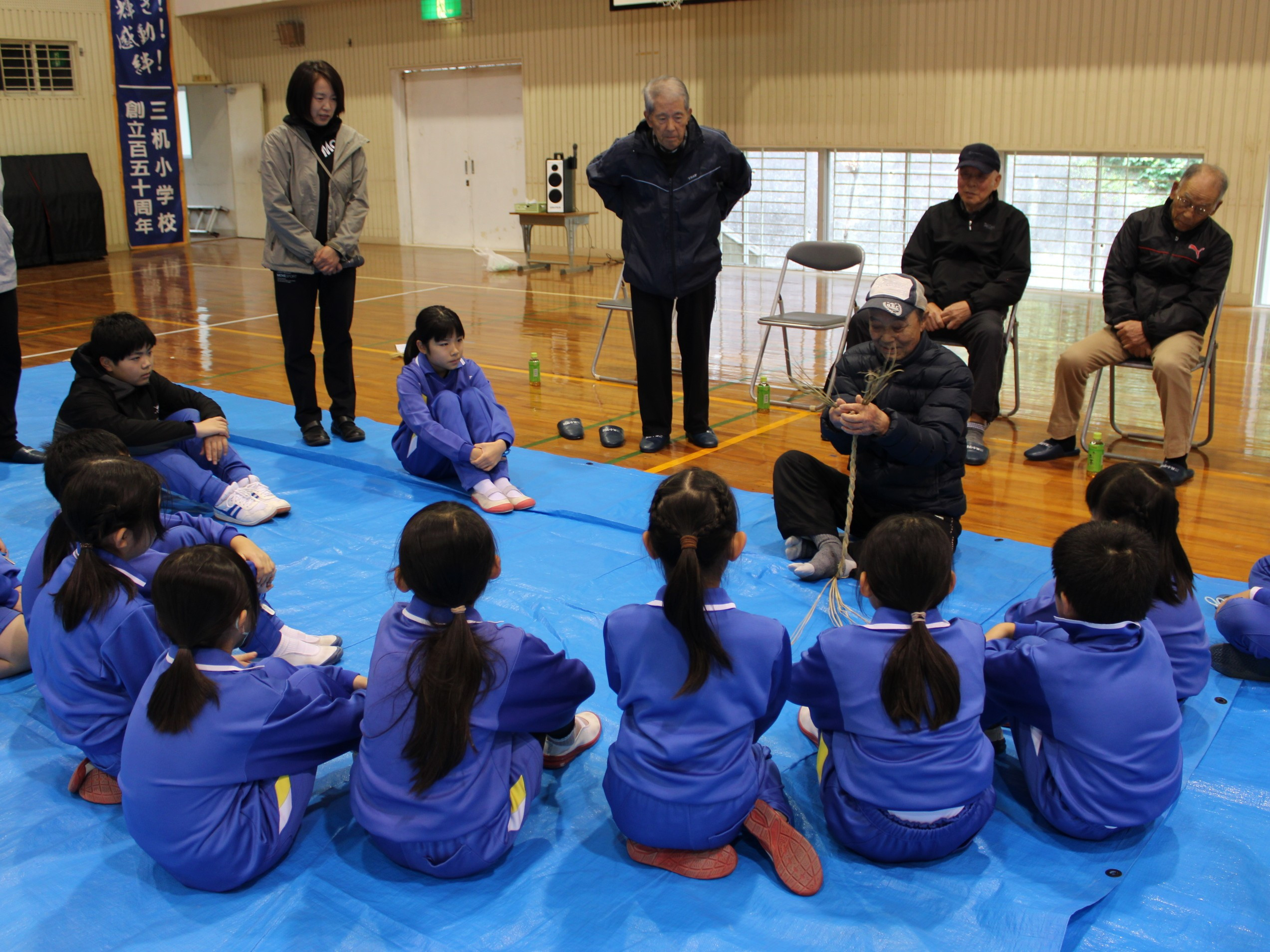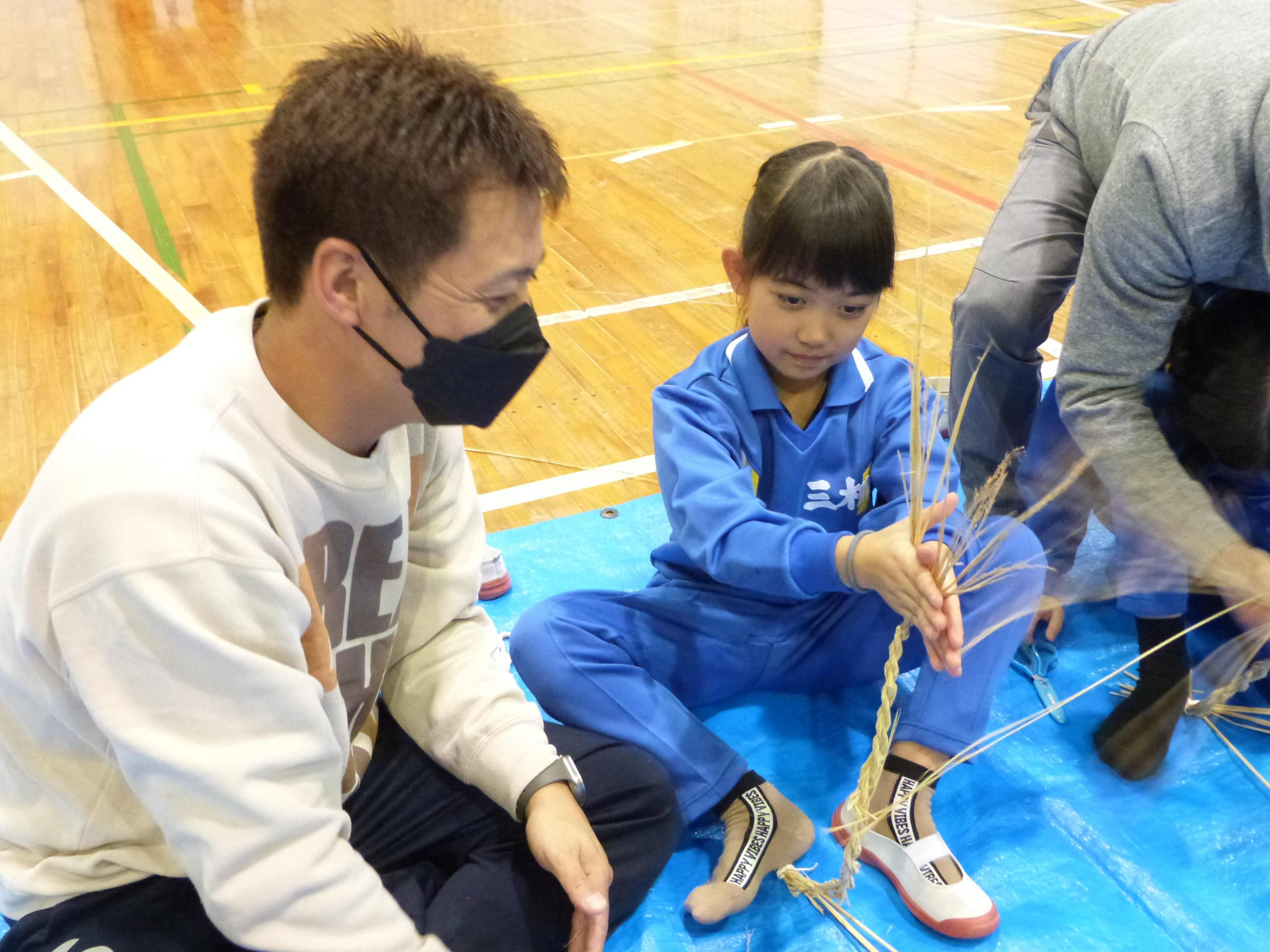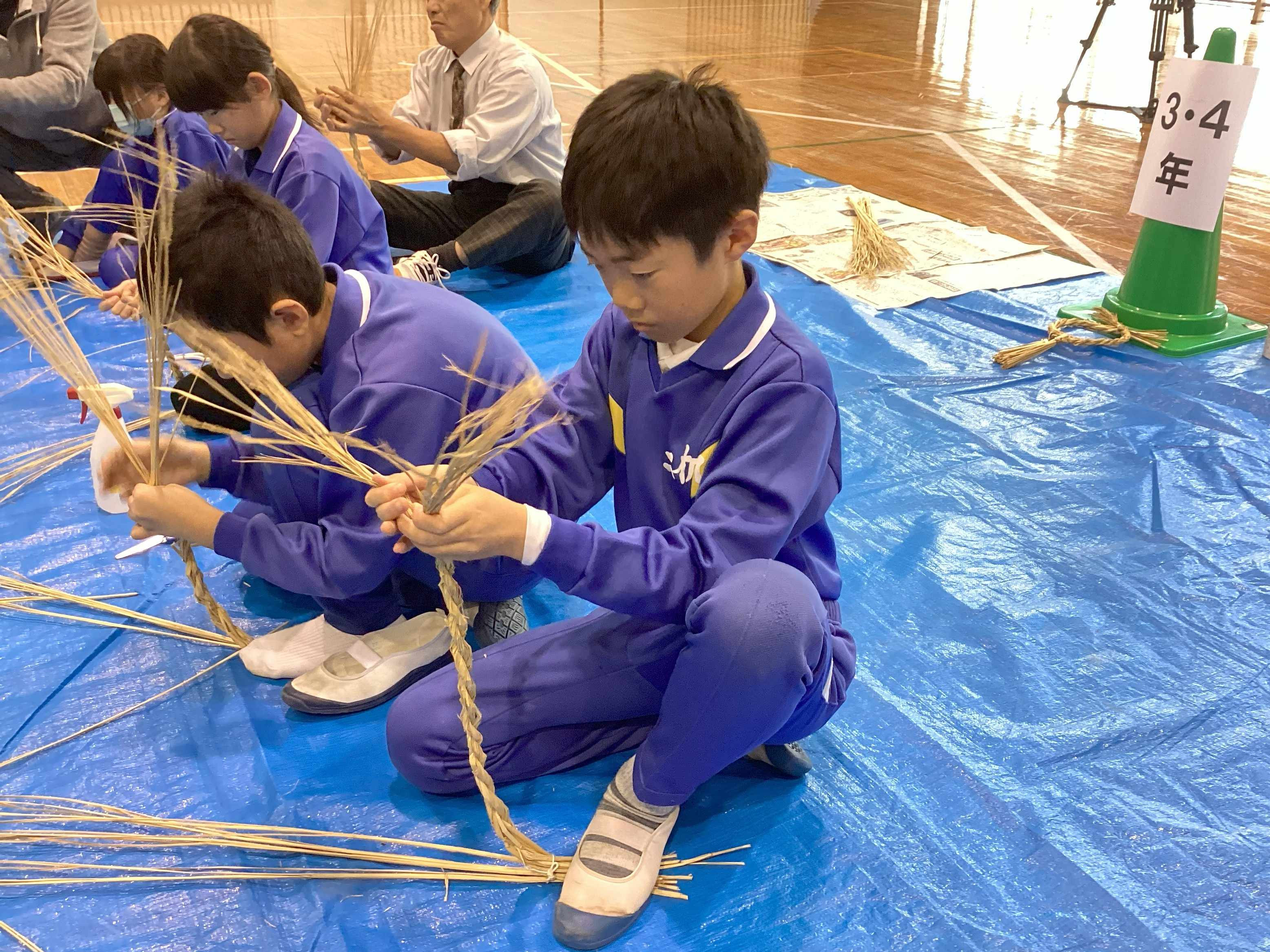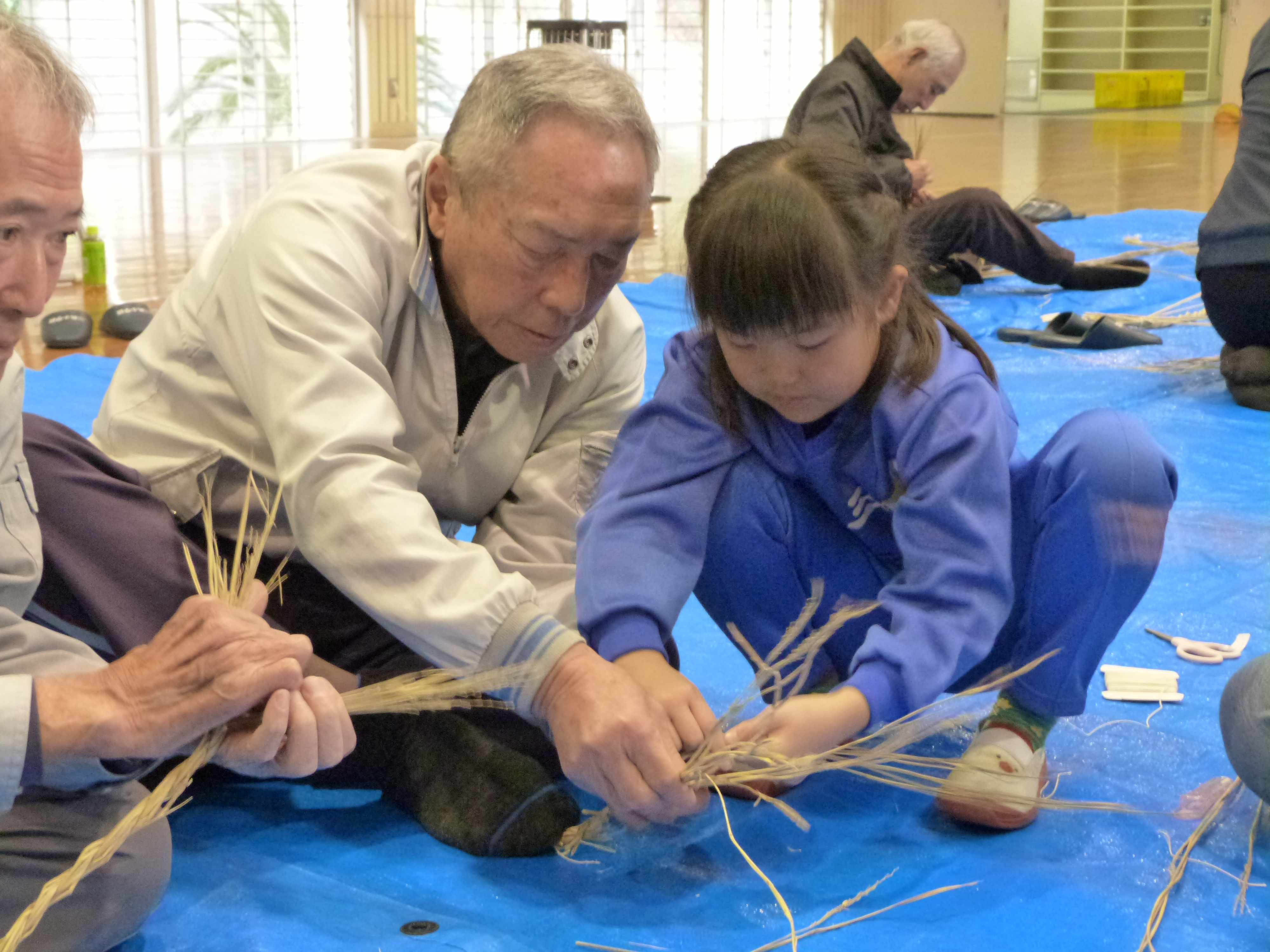 二つの玄関には、老人クラブの皆さんと作ったしめ飾りを。これは、その時に6年児童が、学校用に作ってくれたものです。